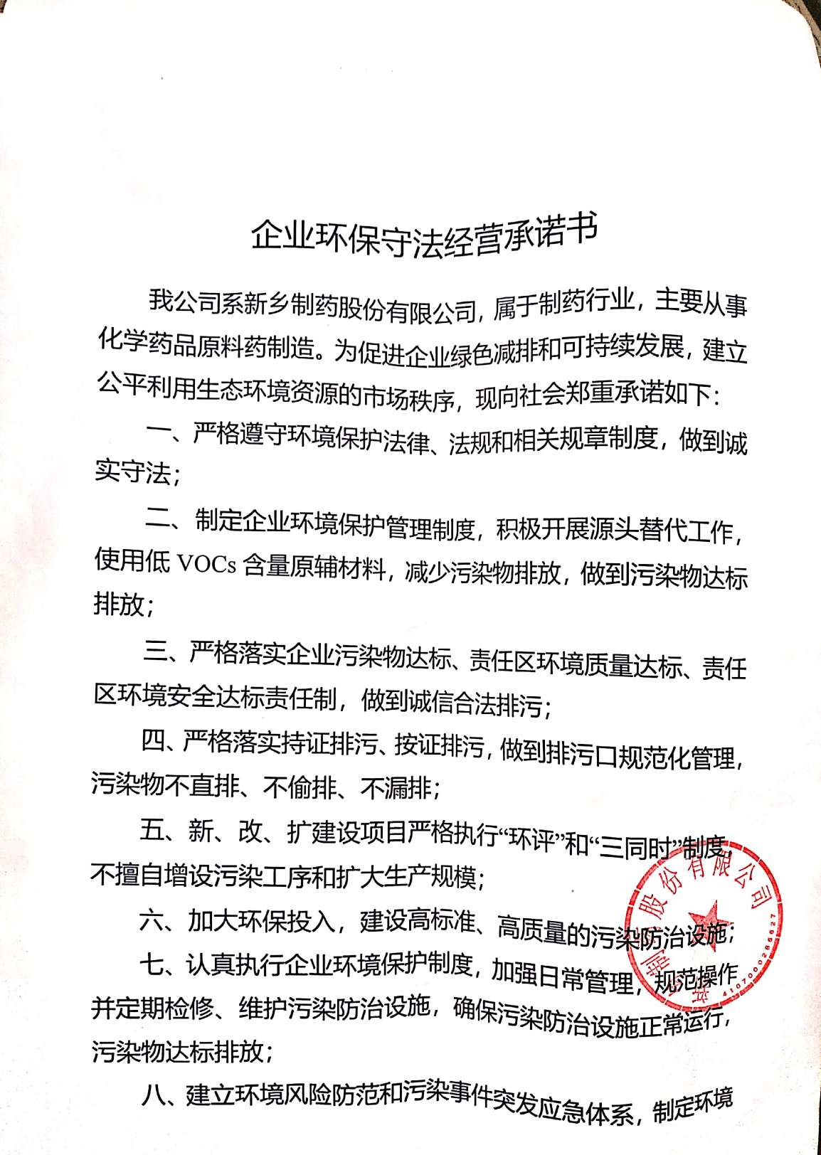 企業(yè)環(huán)保守法經營承諾書
